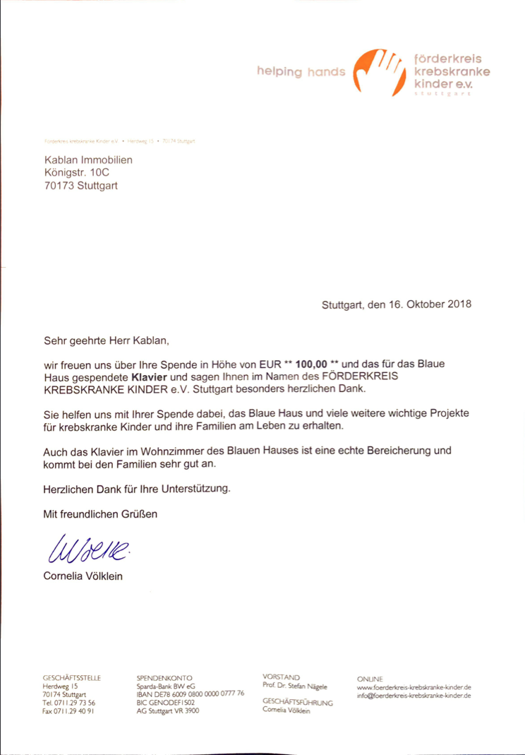 Wir von KABLAN IMMOBILIEN wollen mit unserem sozialen Engagement den Menschen etwas geben, denen es nicht so gut geht wie uns. Es ist keine Selbstverständlichkeit, in Frieden, Freiheit, finanzieller Sicherheit und ohne Krankheit zu leben, das erfahren wir jeden Tag wieder aufs Neue.